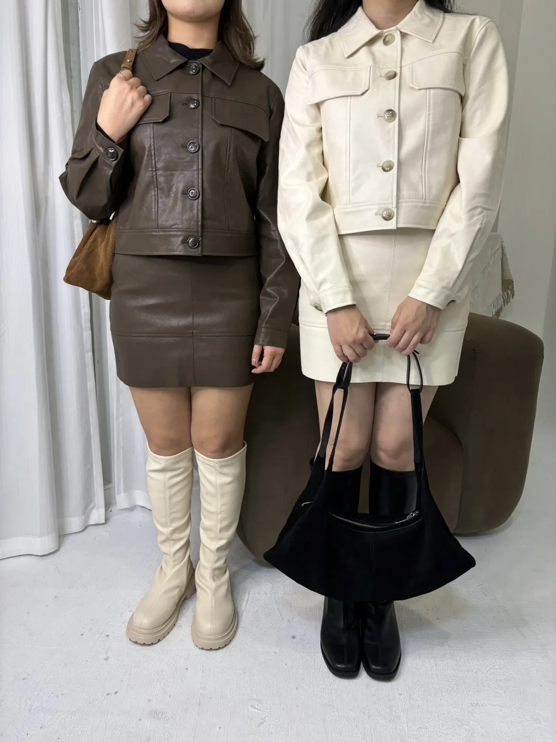 現貨!剩裙*1!正韓歐膩感咖色皮質裙