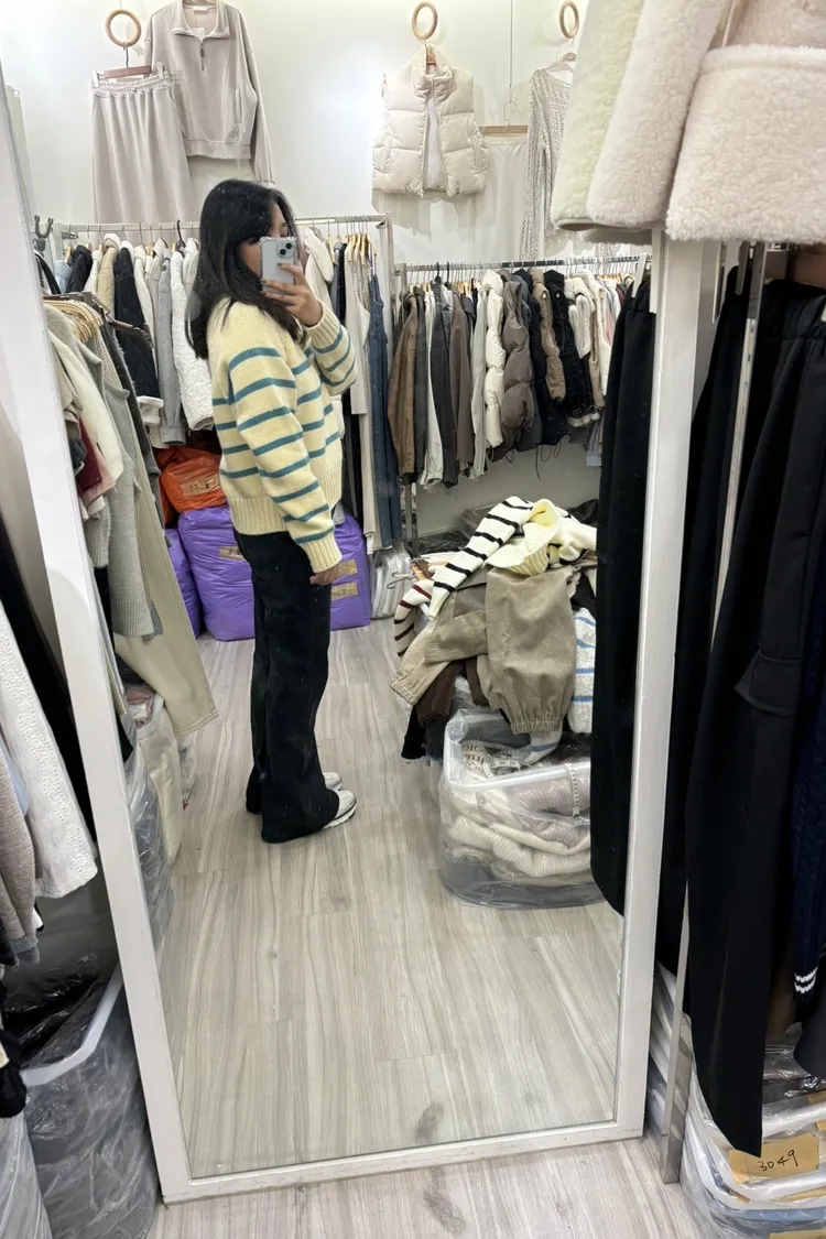 藍條紋的底色是有點米黃哦!!